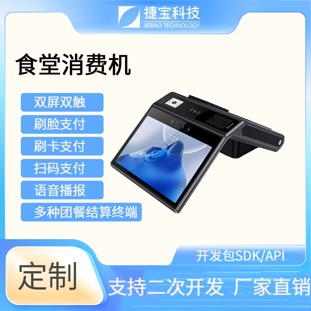 捷寶科技是國內最早推出基于Android系統智能硬件的廠家之一。產品形態涵蓋手持、臺式、立式、掛式、柜式、單屏、雙屏;功能上圍繞NFC識別、條碼識別、生物識別,AI識別等技術大類,開發出可識別CPU卡、M1卡、射頻卡、二代身份證、社???、一維條碼掃描、掃碼支付、指紋識別、人臉識別、掌靜脈識別、虹膜識別、AI菜品識別、智能語音識別等功能的各類產品。